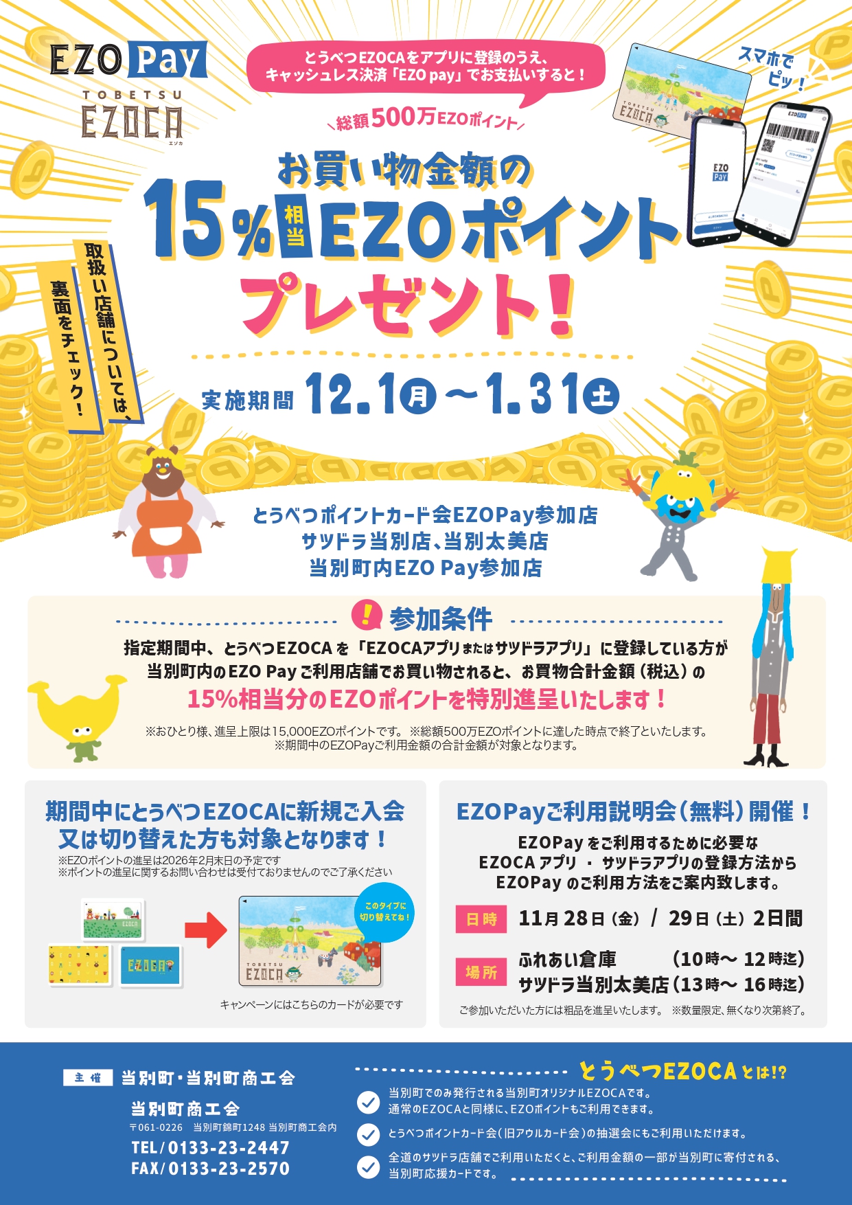 とうべつEZOCA×EZO Payキャンペーン開催!!15%相当EZOポイントプレゼント!1月31日まで!