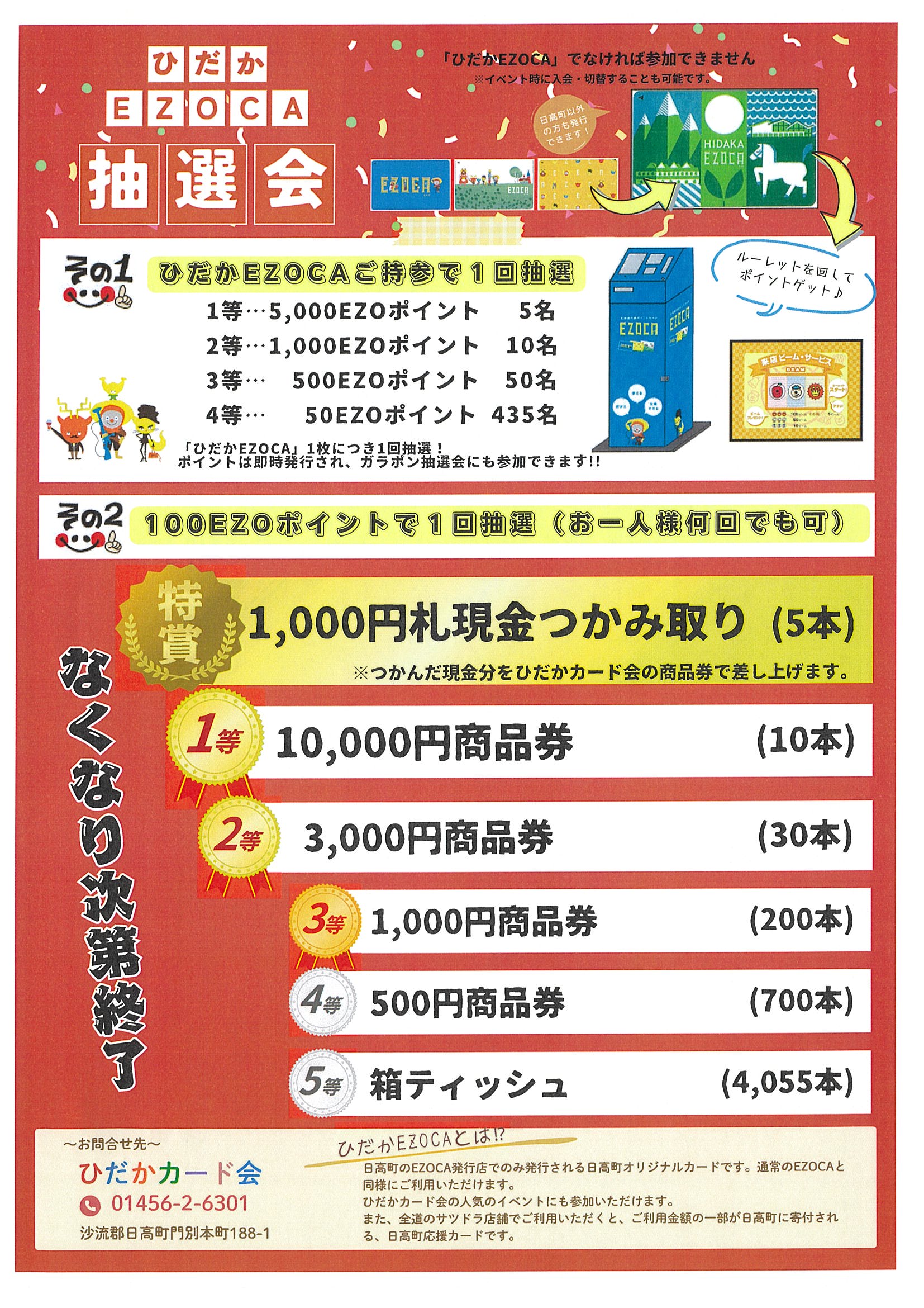 【ひだかEZOCA誕生記念】ガラポン抽選会!!ひだかEZOCA提示でポイントが当たる!現金つかみ取りチャンスも!